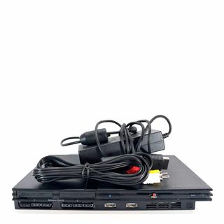 Console Playstation 2 Slim nera. - Compatibile con giochi PS1 e PS2. - Include cavi necessari per il funzionamento.