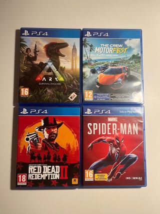 CIASCUN GIOCO 10€ I QUATTRO GIOCHINI INSIEME 35€ Pacchetto di quattro videogiochi per PlayStation 4. - ARK: Survival Evolved - Marvel's Spider-Man The Crew Motorfest e Red Dead Redemption II sono già stati venduti