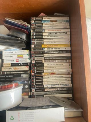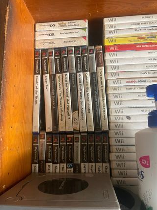 In vendita lotto di videogiochi per Nintendo Wii e PlayStation 2. Include vari titoli popolari. Giochi di Nintendo Wii: Pokémon Edición Blanca, New Super Mario Bros., Mario Kart DS, Ultimate Board Game Collection, Big Brain Academy, London 2012 Olympic Games, New Super Mario, Wii Fit, Wii Play, Monopoly, Link's Crossbow Training, Mario & Sonic at the Olympic Games, New Play Control! Mario Club, Blazing Angels: Squadrons of WWII, PES 2010. Giochi di PlayStation 2: Crash of the Titans, Crazy Taxi, Pro Evolution Soccer 4, Wreckless: The Yakuza Missions, Need for Speed.
