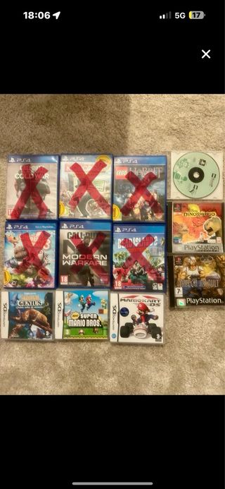Raccolta di videogiochi per PlayStation 1 e Nintendo DS. MI RIMANgono I MARIOS, GLI ANIMALI E QUELLI DI PS1 OFFRO PREZZI RAGIONEVOLI OFFRO PREZZI RAGIONEVOLI - Disney's Dinosaur (PS1) 10€ - Omega Assault (PS1) 25€ - Lego Island 2 (PS1) 10€ - Scholastic Animal Genius (Nintendo DS) 5€ - New Super Mario Bros. (Nintendo DS) 15€ - Mario Kart DS (Nintendo DS) 15€