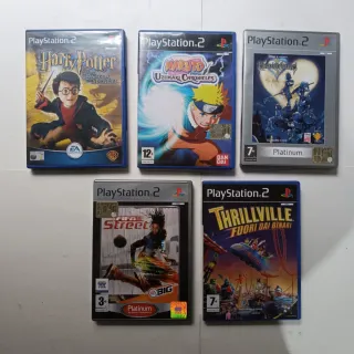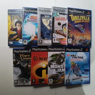 Vendo lotto di 9 giochi PlayStation 2 originali, tutti testati e perfettamente funzionanti. I dischi sono in buone condizioni; alcuni presentano graffi, ma risultano tutti funzionanti senza problemi. Condizioni estetiche complessive buone, come visibile nelle foto allegate. Giochi inclusi nel lotto: - Harry Potter e la Camera dei Segreti - Naruto: Uzumaki Chronicles - Kingdom Hearts – Platinum - FIFA Street – Platinum - Thrillville: Fuori dai Binari - Pirati dei Caraibi: Ai Confini del Mondo - Gli Incredibili: Una Normale Famiglia di Supereroi - Monster Jam - Ski Racing 2006
