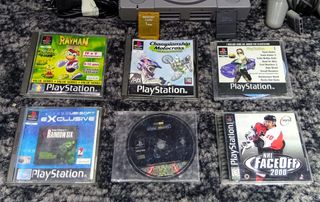 Playstation 1 con scatola modello SCPH- 7502 perfettamente funzionante e in ottime condizioni, completa di cavi alimentazione e video, un controller funzionante, l'altro è in regalo, 2 memory card (1MB- 128MB) e giochi come in foto, in condizioni varie, tutti i dischi sono in ottime condizioni e funzionanti custodie che possono presentare danneggiamenti più 2 dischi demo