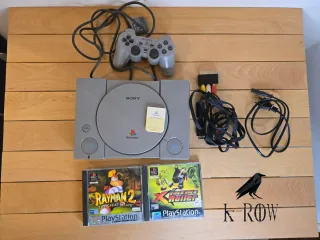 Vendo console PlayStation 1 con controller e cavi. - Console PlayStation 1 - Controller originale Sony - Cavi di collegamento - Gioco Rayman 2: The Great Escape - Gioco Extreme Roller