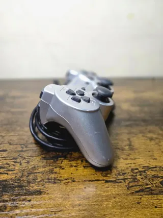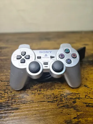 Controller originale per Playstation 2 di colore argento. - Design classico. - Pulsanti e levette. - Connessione cablata.