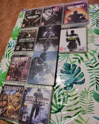 Lotteria di 10 videogiochi della saga Call of Duty per PlayStation 3. - Call of Duty: Black Ops - Call of Duty: Black Ops II - Black Ops 3 - Modern Warfare - Call of Duty: Modern Warfare 2 - Call of Duty: Modern Warfare 3 - Call of Duty: Advanced Warfare (Edizione Day Zero) - Call of Duty Ghost - Call of Duty 3 - Call of Duty World at War. Tutti in spagnolo, in perfetto stato.