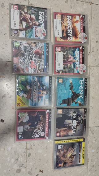 Pacchetto di nove videogiochi per PlayStation 3. PES 2011 senza manuale, FIFA Street senza manuale, Virtua Tennis 4 senza manuale, Far Cry 3 completo con copertina danneggiata ma sovraccoperta intatta, Far Cry 4 completo, MotorStorm completo, The Bureau completo, Far Cry 2 completo, Brink senza manuale.