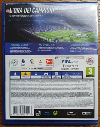 Gioco sportivo per PlayStation 4. - Copertina con Cristiano Ronaldo. - Include il logo EA Sports e FIFA. - Classificazione PEGI 3.
