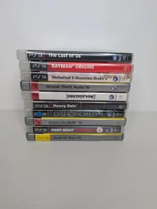 stock di 10 videogiochi originali per Sony PlayStation 3 che include alcuni dei capolavori più acclamati della console come The Last of Us, God of War III, Rayman Origins e Uncharted 3 L'inganno di Drake. Il lotto è completato da titoli vari tra cui Grand Theft Auto IV, Heavy Rain, Dishonored, SoulCalibur IV, Fight Night Champion e Prototype, tutti testati e perfettamente funzionanti con custodie originali in ottime condizioni. Si segnala che diverse copertine sono in lingua straniera (principalmente francese e polacco), ma i dischi appartengono alla regione PAL europea e sono quindi compatibili con tutte le console PS3 italiane, in