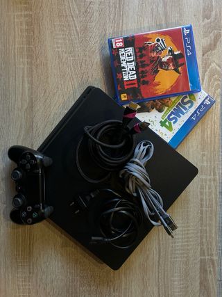 Console PlayStation 4 Slim da 1TB in colore nero, in PERFETTO STATO!! Aspetto offerte. Include: - Controller DualShock 4. - Giochi: Red Dead Redemption 2 e I Sims 4 + GTA V + Five Night’s at Freddy’s + Bully. - Cavi di connessione e alimentazione. - Caricabatterie per controller da 3 metri.