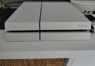 Console PlayStation 4 in bianco. - 500 GB. - 2 controller inclusi. - Ha un piccolo graffio su un lato, si nota se ti avvicini. - Funziona perfettamente.
