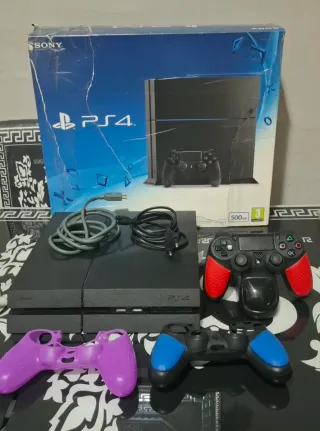 Console Playstation 4 da 500GB funziona perfettamente, già formattata e con 500GB vuoti. Motivo della vendita per aver ricevuto la PS5. Include controller ma i pulsanti sulla sinistra, evidenziati in giallo nelle foto, non funzionano. Include cavo HDMI + cavo PS4, 2 cover in regalo e caricatore per caricare 2 controller contemporaneamente o solo 1, ottimo anche come supporto. Consegna a mano a Premià o dintorni.