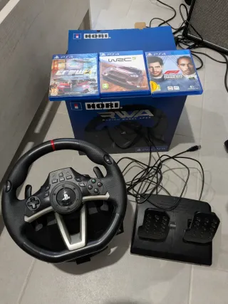 Vendo un set completo di gaming pronto per essere collegato e utilizzato! Ideale come regalo o per gli appassionati di simulazione di guida e calcio. Tutto il materiale è ben curato e funziona perfettamente. - Volante da corsa Hori RWA Racing Wheel Apex per PlayStation 4. - Design ergonomico per una presa comoda. - Pedali inclusi per un'esperienza di guida completa. - Finitura in colore nero. PREZZO TRATTABILE!