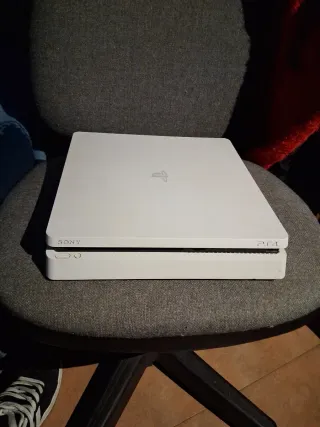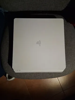 Console PlayStation 4 Slim in bianco con 500GB di spazio di archiviazione con una crepa e segni d'uso. Include un controller, ma questo non funziona senza la custodia fornita. Il problema del controller è che può essere collegato solo a un dispositivo, una volta collegato a uno senza la custodia non può essere collegato a un altro. A parte questo, può essere utilizzato senza problemi. Capacità di 500GB. Design Slim ed elegante. Controller incluso.