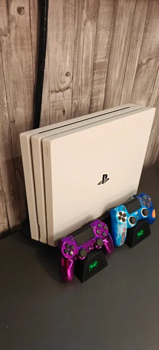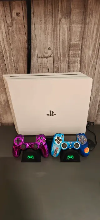 Consola PlayStation 4 Pro in bianco. Include DualShock 4 e il gioco FIFA 15. - Modello: PS4 Pro 1TB - Colore: Rosa/Bianco - Include: Mando DualShock 4, Gioco FIFA 15 - Include: Cavo caricatore + HDMI. Ho un secondo controller che potrei aggiungere come pack, ma venderei tutto il pack a 200€.