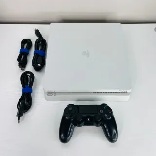 Console PlayStation 4 Slim da 500GB in bianco, con due controller e un disco rigido esterno Seagate da 4TB. Include due controller e un disco rigido esterno Seagate da 4TB. Funziona perfettamente, solo i controller hanno una batteria leggermente scarica.