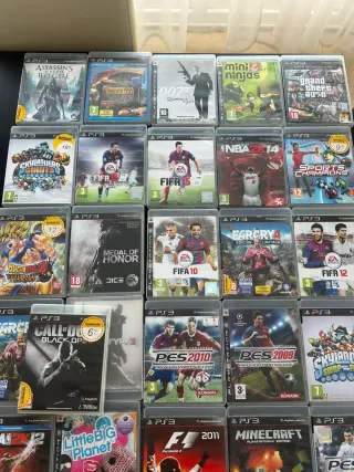 Collezione di videogiochi per PlayStation 3, PlayStation 2 e PSP. Include titoli di vari generi. Chiedere il prezzo di ciascuno. Vari giochi tra cui - Pipe Mania - Tekken: Dark Resurrection - Burnout Dominator - Age of Empires: The Age of Kings - Disney's Dinosaur - Les 4 Fantastiques - Rayman 3 Hoodlum Havoc - The Getaway - Final Fantasy X-2 - Athens 2004 - Pop Star Academy - Ratchet & Clank - Buzz: El Gran Concierto - SingStar Pop - Trinity Universe - Disgaea 3: Absence of Justice - FIFA 13 (x2) - FIFA 15 - MotorStorm: Pacific Rift - Battlefield 3 - Bionic Commando - Call of Duty: Black Ops - Red Dead Redemption - Heavy Ra