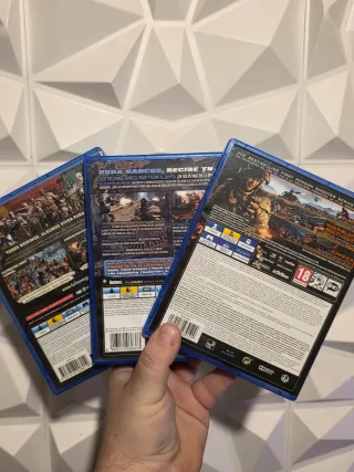 Videogiochi per PlayStation 3, a 4€ ciascuno: Battlefield Bad Company, Battlefield Bad Company 2, Battlefield 3, Battlefield 4, Call of Duty Advanced Warfare, CoD Black Ops, CoD Black Ops 2, CoD Black Ops 3, CoD Ghosts, CoD Modern Warfare 2, CoD Modern Warfare 3, CoD World at War, Invizimals: El Reino Escondido, SmackDown vs Raw 2009, Guitar Hero World Tour, Destiny. Si accettano scambi con altri prodotti preferibilmente gaming (console e videogiochi). Per qualsiasi domanda, consultaci senza impegno!