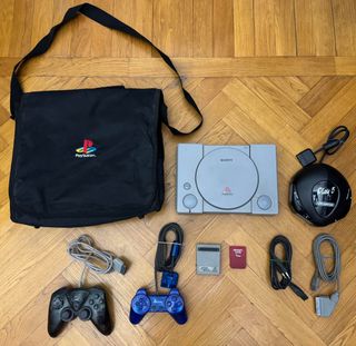 Vendo una Sony PlayStation 1 primo modello grigia versione Pal usata modello Scph-7502, funzionante in tutto. il lotto comprende: la console integra in ottimo stato. un controller blu compatibile normale della xtreme. un controller analogico compatibile della Joytech. una Memory card rossa compatibile da 1 mega piena di salvataggi di giochi e funzionante, una pro action replay, un adattatore per giocare con 4 controller Play 5 compatibile della X tecnologies, un cavo scart compatibile rpg e un cavo di alimentazione. In più regalo una bella borsa porta PS1 in ottimo stato marchiata Playstation con 2 vani porta oggetti e tante tasche.