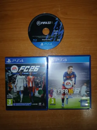 Pacchetto di giochi FIFA per PlayStation 4. - Disco di FIFA 22. - Gioco FC 26. - Gioco FIFA 16. Il regalo perfetto per gli amanti del calcio e dei videogiochi. Tutti e tre i giochi sono in ottime condizioni, specialmente FIFA 26. FIFA 22 è senza scatola. Se sei interessato, scrivimi!