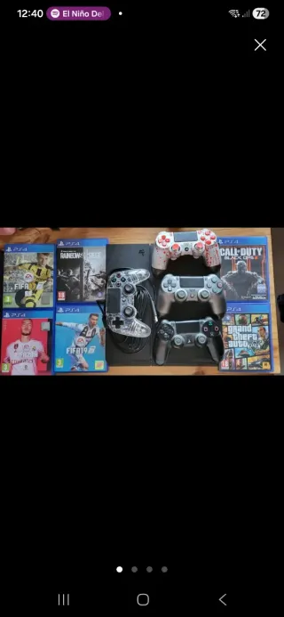 🎮 PS4 in ottime condizioni - Pacchetto completo. Totalmente funzionale 🎮 Include: ✅ Tutti i cavi originali (corrente e HDMI) ✅ 2 controller originali perfettamente funzionanti ✅ Volante da corsa T80 in ottime condizioni ✅ Cuffie da gioco incluse, come nuove ✅ 21 giochi in totale, suddivisi in: 🗺️ 8 giochi di avventura • Red Dead Redemption 2 / The Last of Us... 🔫 7 giochi sparatutto • Call of Duty (diversi titoli della saga) / Battlefield... 🎽 6 giochi sportivi e di guida • FIFA / Need for Speed... 📌 PREZZO TRATTABILE: il volante, le cuffie da gioco e i giochi possono essere venduti separatamente se non interessano tutti.