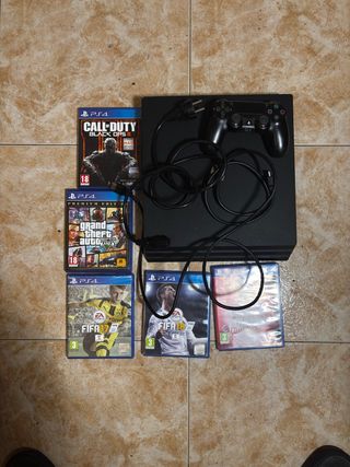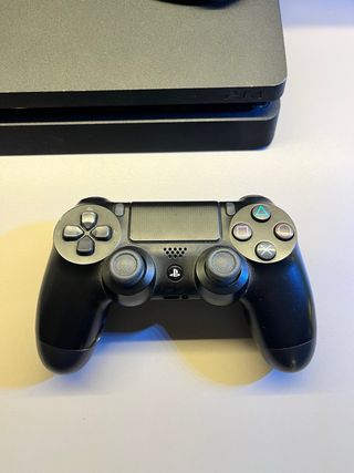 Vendo PS4 praticamente nuova, molto curata. Non la uso. È da 500GB ed è il modello Slim. Vendo con il suo cavo di alimentazione originale, cavo HDMI, un controller originale PS e l'altro è di Amazon. Tre giochi: GTA5, NBA 2k23 e EA FIFA 24. Poco negoziabile.