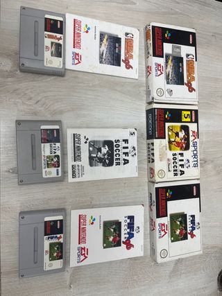 Lotteria di tre videogiochi per Super Nintendo (SNES). - NBA 96 - FIFA 96 Soccer - FIFA 96 Soccer (Versione PAL) tutti completi ma senza l'inserimento del gioco come si vede nella foto. Le foto fanno parte della descrizione. Tag: Nintendo, PlayStation, Xbox, Mario, Pokémon, Zelda, Switch, PS5, PS4, Xbox Series X, Game Boy, Retro, Sega, Super Nintendo, N64, GameCube, Wii, DS, 3DS, Amiibo, Fortnite, Minecraft, Call of Duty, FIFA, Animal Crossing, Smash Bros, Kirby, Metroid, Sonic, Retro gaming, Controller, Joy-Con, Arcade, Limited Edition.