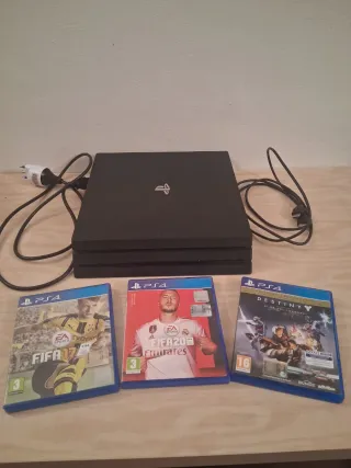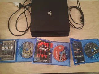Console PlayStation 4 Pro da 1TB in colore nero, ideale per goderti i tuoi giochi preferiti. Include il controller DualShock 4. Cablaggio necessario. Giochi inclusi: Call of Duty Black Ops III, Grand Theft Auto V, FIFA 17, FIFA 18, FIFA 20. Acquistata meno di un mese fa e usata molto poco.
