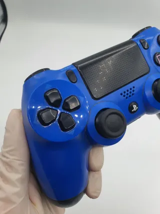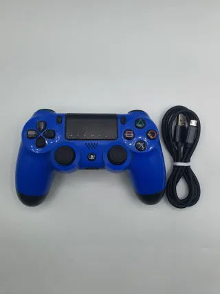 Controller Dualshock per Playstation 4 di colore blu. Presenta diversi segni d'usura, vedere foto. - Design ergonomico. - Pulsanti e stick analogici. - Cavo di ricarica compatibile incluso.