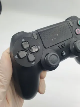 Controller Dualshock per PlayStation 4. Presenta diversi segni d'usura, vedere foto. - Colore nero. - Include cavo di ricarica compatibile.