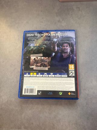 Gioco per PlayStation 4, Uncharted 4: Fine di un Ladro. - Copertina con grafica a tema mappa e moneta. - Classificazione PEGI 16. - Sviluppato da Naughty Dog.