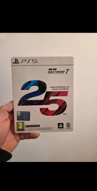 Edizione speciale per il 25° anniversario di Gran Turismo 7 per PS5. - Copertina metallica con design celebrativo. - Include codice per contenuti digitali PS4 e del 25° anniversario.