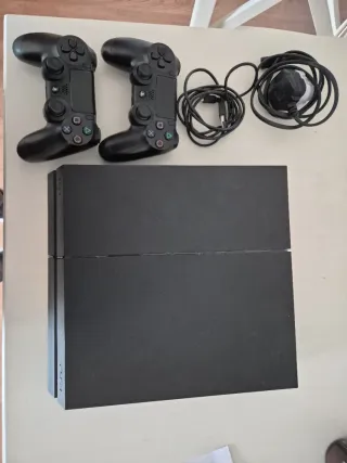 Console PlayStation 4 da 500GB in colore nero, con due controller. - Hard disk da 500GB. - Due controller. - Cavo USB. La console è stata acquistata in Irlanda, il cavo di alimentazione ha il suo adattatore per la Spagna.
