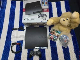 PS3 modello Super Slim da 12 GB di memoria interna, con PlayStation Eye e controller Move. Il Move funziona ma ha la batteria da sostituire. Inclusi anche 8 giochi tra cui Minecraft, Pes 2012, Fifa 09, NBA 2K14, Grid ecc... Questa PlayStation era originariamente venduta con il gioco "a spasso con i dinosauri", per cui c'è anche il suo wonderbook. Aggiornata all' ultima versione rilasciata da Sony (4.92). Completa con cavo di alimentazione. Posso aggiungere su richiesta joypad non originale e un cavo HDMI. Perfettamente funzionante, mai smontata, solo piccoli difetti estetici e sportellino lato hard disk esterno mancante.