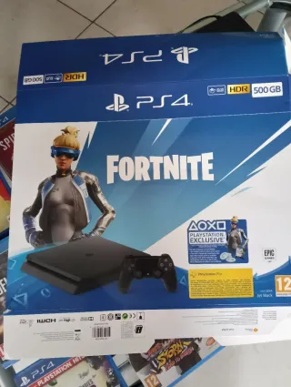 Console PlayStation 4, edizione speciale Fortnite. - Hard disk da 500 GB. - Supporto HDR. - Colore Jet Black. With 9 games and original package