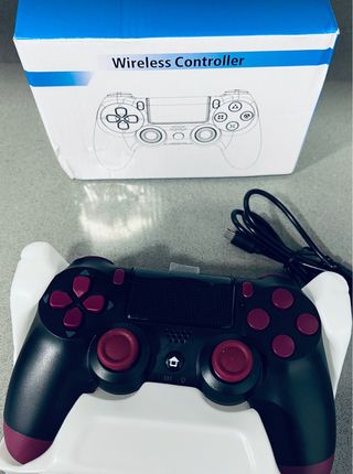 Controller wireless in colore nero con dettagli in bordeaux. Design ergonomico. Tasti e joystick ad alta precisione. Compatibile con console PlayStation 4.