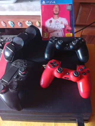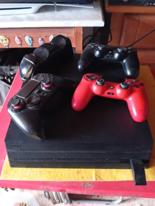 Console PS4 Pro in ottime condizioni, il controller rosso nei giochi come Fortnite si muove leggermente e a volte non sempre il joystick destro (è possibile giocare con esso) il controller nero non si accende (fino a poco funzionava bene) l'altro controller non è ufficiale serve per PS4, Android e PC, console in ottime condizioni, è possibile vedere e provare prima dell'acquisto