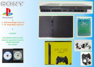Console provata è funzionante in buone condizioni estetiche , ha solo qualche graffio Completa di cavi per il collegamento elettrico / video Inclusi c’è la memory card da 8 MB + 1 - DVD Swap Magic 3 plus 3.6 1 - CD Swap Magic 3 plus 3.6 I dischi sono molto rigati ma funzionano perfettamente + 4 - GIOCHI testati e funzionanti THE MATRIX PATH OF NEO Need for Speed Hot Pursuit 2 POKER MASTERS ACE COMBAT DIFETTI 1 - La porta n.2 per inserire il controller non funziona 2 - L’incastro per la chiusura del disco non mantiene la chiusura del coperchio e quindi è stato messo un po' di nastro 3 – Il controller non funziona