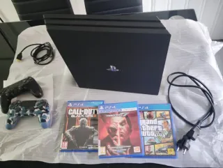 Vendo PS4 Pro da 1TB completa con giochi. La console è in perfetto stato con manutenzione di pasta termica e pulizia profonda appena fatte. È il modello da 1TB. Il controller è nuovo, l'anno scorso si è rotto il vecchio e ne ho comprato uno nuovo originale, ma ho comprato la PS5 alla fine dell'anno e non l'ho quasi usato. I giochi sono quelli nelle immagini e sono in perfetto stato, nessuno graffiato. La console viene consegnata completamente formattata e aggiornata all'ultima versione, insieme a tutti i cavi necessari per metterla in funzione. Posso inviare video e foto in privato.
