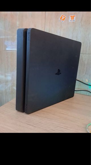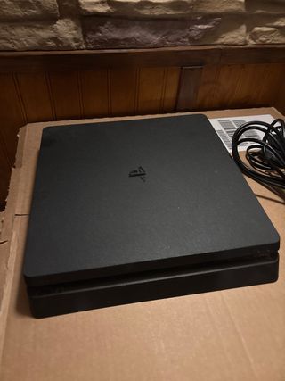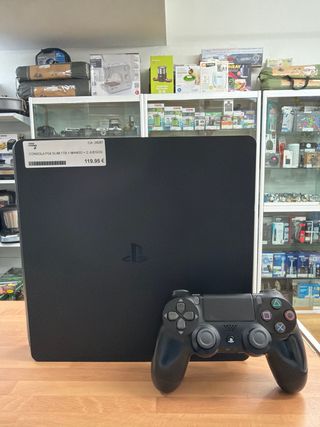 Console PlayStation 4 Slim con finitura nera e 1TB di spazio di archiviazione. Modello PS4 Slim, capacità di 1TB, colore nero. Include cavi di connessione. Senza controller. Con garanzia. Negozio T-locompro, C/Mostoles 38, Fuenlabrada, Madrid. +info 919471850.
