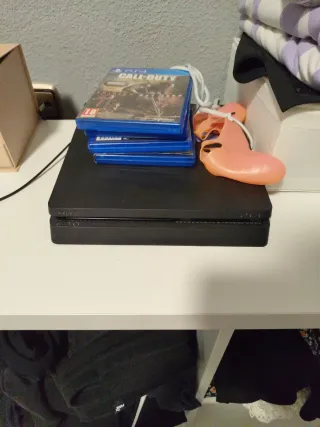 In vendita PS4 Slim 500GB perfetta per regalo. Include: cavo di alimentazione, console PS4 Slim, controller originale con dettaglio (carica tramite base), 4 giochi di successo: GTA V, Minecraft, Call of Duty WW2 e Call of Duty 4. Stato generale buono, con segni normali di utilizzo, suono normale, pulito sarebbe perfetto. Mai riparata, mai aperta. Aperto a negoziazioni giuste.