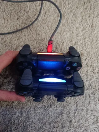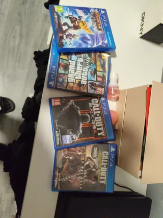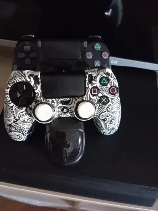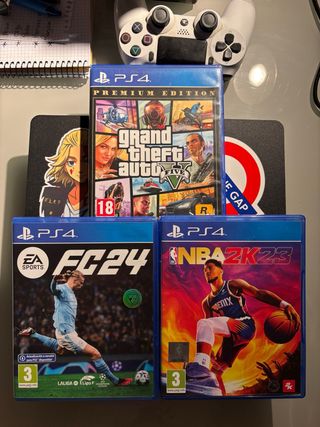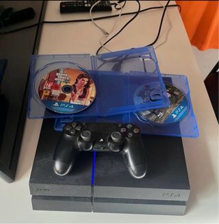 Vendo PS4 praticamente nuova, molto curata. Non la uso. È da 500GB ed è il modello Slim. Vendo con il suo cavo di alimentazione originale, cavo HDMI, un controller originale PS e l'altro è di Amazon. Tre giochi: GTA5, NBA 2k23 e EA FIFA 24. Poco negoziabile.