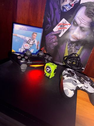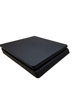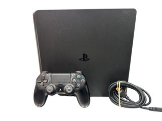 Console PlayStation 4 Slim in colore nero, pronta per ore di divertimento. Include il videogioco FIFA 19, un controller DualShock 4, un controller aggiuntivo mimetico, 1 tera di memoria. Funziona perfettamente. È stata revisionata e manutenuta per mantenerla in ottime condizioni.