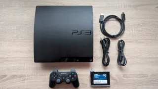 Playstation 3 Slim modello CECH-3004A. Ultima revisione della serie Slim prima del passaggio alla Super Slim, è il modello più affidabile di PS3 disponibile. Utilizzata in ambiente ventilato, manutenzione e pulizia recente con pasta termica Arctic MX-4, lettore di dischi funzionante perfettamente. Il disco rigido meccanico è stato aggiornato con un SSD NAND da 240GB, migliorando tempi di caricamento e fluidità generale. Incluso un controller Dualshock 3 Sixaxis, cavo di alimentazione, cavo di ricarica Mini USB e cavo HDMI di buona qualità. Consegna a mano e spedizione in tutta Spagna per utenti con pe.