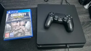 Console PlayStation 4 Slim in colore nero. Si trova in ottime condizioni, praticamente come nuova. - Modello: PS4 Slim - Colore: Nero - Regalo due controller - 3 Giochi: Uncharted (Il Legado Perduto), Call of Duty Black Ops 4 e Fallout 76. Ogni gioco costa tra 15 e 13 euro, sono nuovi sigillati, fornisco tutto completo, cavo HDMI e cavo di ricarica dei controller, prezzo speciale, posso fare qualche offerta ragionevole.