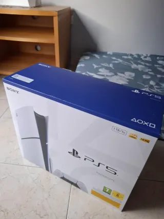 Console PlayStation 5 Slim con lettore di dischi, completamente sigillata e con garanzia. Modello: PS5 Slim. Capacità: 1 TB. Supporto 4K e 120Hz. Include HDR.