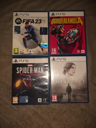 Vendo lotto di 4 videogiochi per PlayStation 5. - FIFA 23 15€ - Borderlands 4 35 - Marvel's Spider-Man: Miles 30 Morales - Silent Hill 2 già venduto Tutti i giochi sono in ottime condizioni estetiche e sono tutti testati e funzionanti al 100% Prezzo scontato per tutti i 3 rimanenti 50 euro