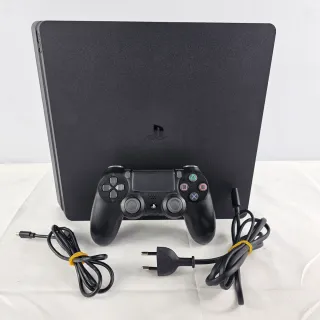 Console Sony Playstation 4 Slim con 1TB di memoria. Leggeri segni sulla scocca - Firmware aggiornato alla versione 10.50. - Include controller DualShock 4. - Cavo di alimentazione e cavo HDMI inclusi.
