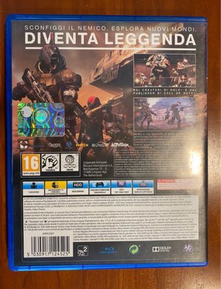 Videogioco per PlayStation 4, Destiny. - Custodia danneggiata come visibile in foto. - Gioco funzionante, disco privo di graffi. - Contenuto esclusivo PlayStation. - Mappe multigiocatore competitive. - Assalto al Palazzo della Piscare. - Armi, navi ed equipaggiamenti esclusivi. - Completamente in italiano.