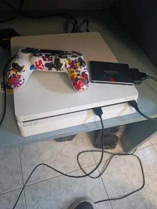 Console PlayStation 4 Slim di colore bianco, con SSD e giochi inclusi. - Console PS4 Slim - Controller personalizzato - SSD Samsung - Cavi di alimentazione e HDMI - Giochi inclusi Vendo PlayStation 4 slim bianca perfettamente funzionante tenuta sempre con aggiunta un SSD Samsung 850 512 GB con 3 videogiochi, tutto perfettamente. Nota: a volte Days gone da problemi con la lettura del disco ma non dipende dalla console ma dal gioco stesso Altra nota i gommini del joypad sono rovinati ma non ha drift e niente per il resto il joypad funziona perfettamente bene. Il joypad è blu Cover inclusa. Nessun danno estetico alla console tutto p