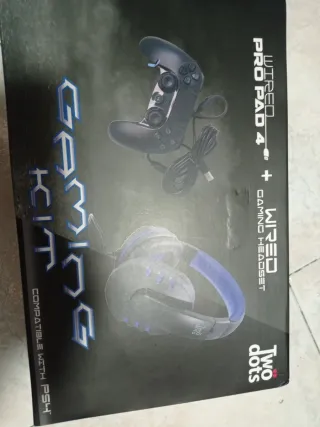 Kit gaming completo per PS4, include un controller e un paio di cuffie. - Controller cablato con vibrazione - Cuffie cablate. - Compatibile con PS4. Volume regolabile Nuovo ancora da aprire la confezione